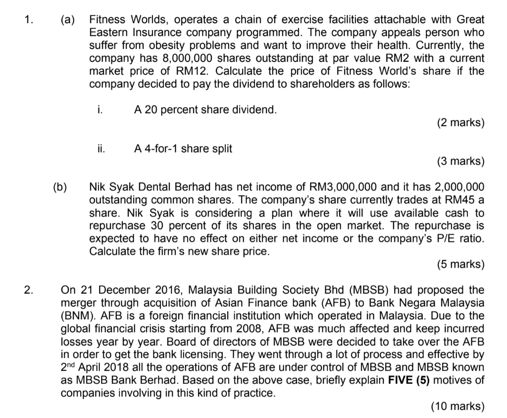 Solved 1 A Fitness Worlds Operates A Chain Of Exercise Chegg Com